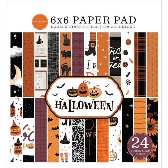 15x15 cm paperikko täynnä täydellisiä papereita Halloween askarteluihin. 24 kaksipuoleista arkkia.