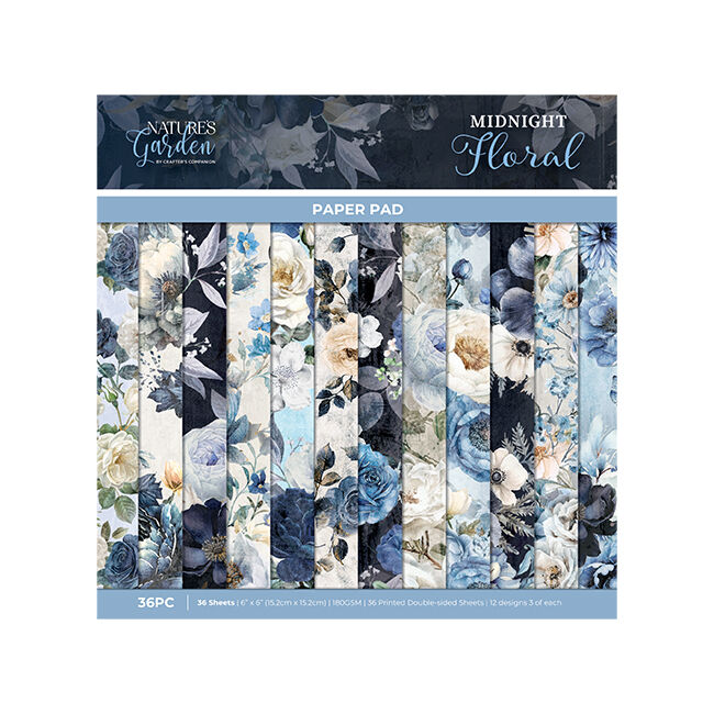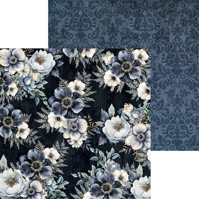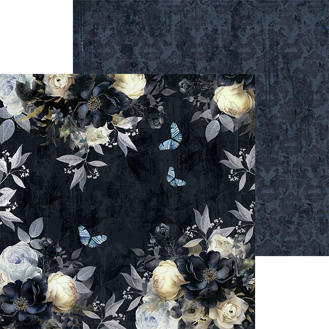 Keskiyön kukkakuvioinen 15 x 15 cm paperikko tuo pehmeää romantiikkaa ja kuunvaloista hienostuneisuutta täydessä kukassa.