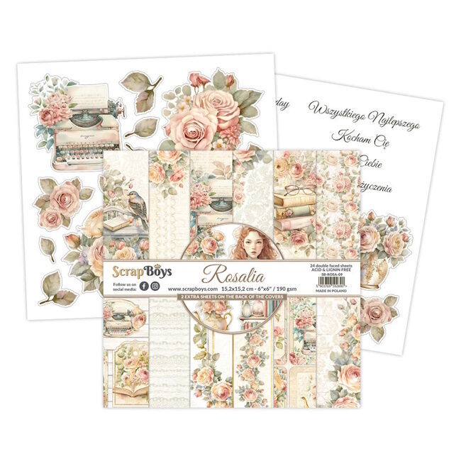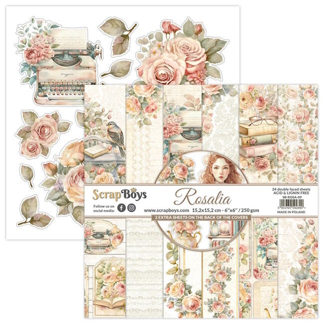 24 kaksipuolisen sivun sarja korkealaatuista scrapbooking-paperia. Jokainen sivu on kooltaan 15,25x15,25 cm (6x6 tuumaa). Setti sisältää 4x6 kuvioita + 2x kuvioarkki kansien käänröpuolella. Paperi painaa 250g/m2.