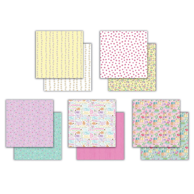 Lajitelmassa on 40 kaksipuolista arkkia, 150 ja 200 gsm, happovapaa kartonki.