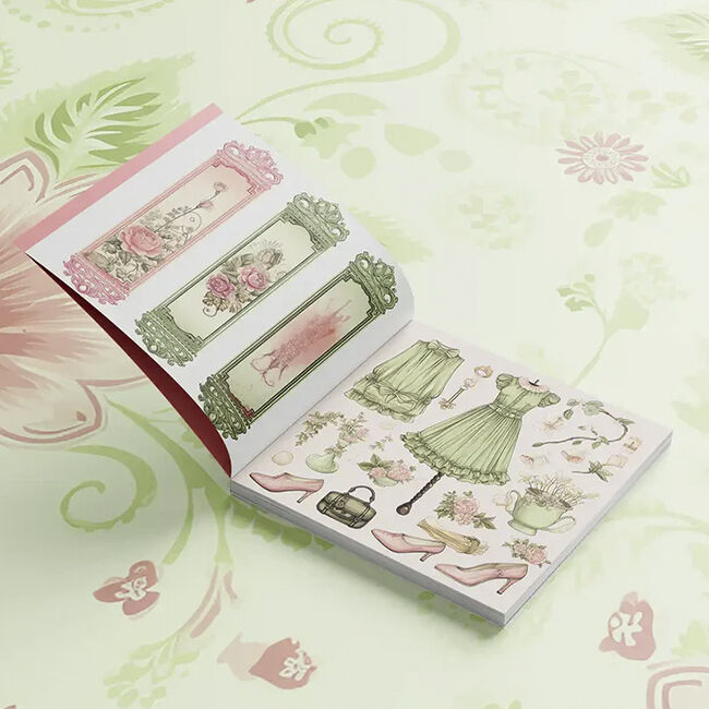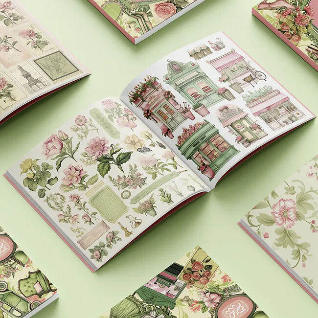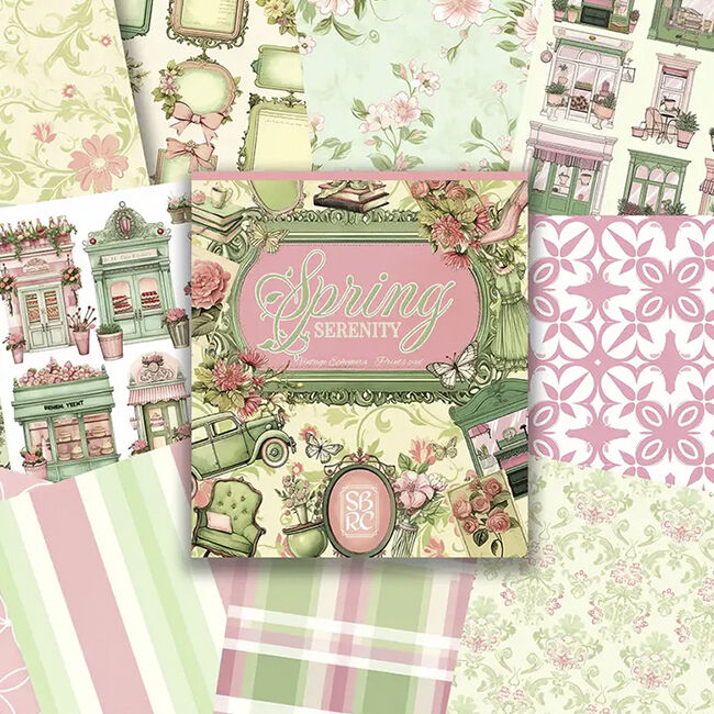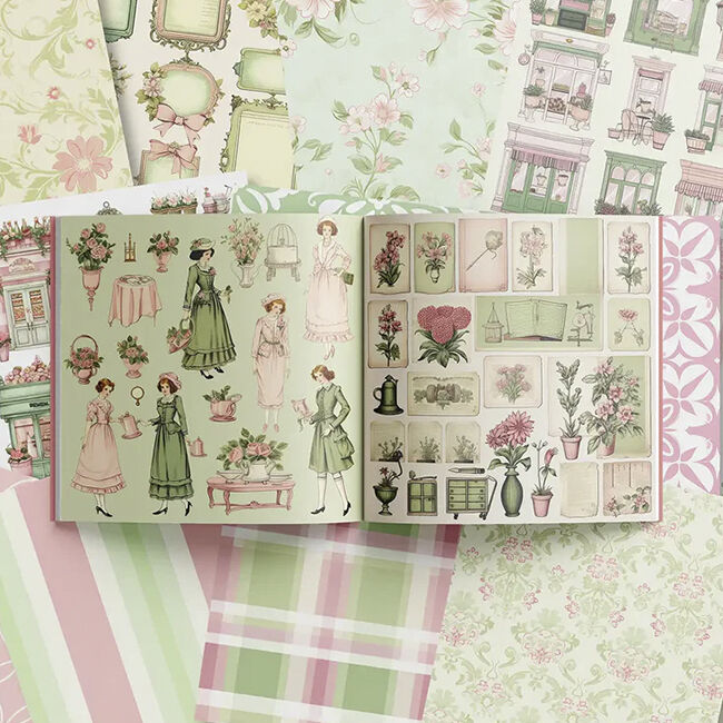 Tervetuloa 'Spring Serenity'n rauhalliseen lumoukseen, jossa vaaleanvihreän ja vaaleanpunaisen lempeät sävyt kuiskivat kukkivia puutarhoja ja auringon suutelemia niittyjä. Sukella vintage-aiheisten kuvitusten maailmaan, jotka on huolellisesti kuratoitu antamaan scrapbooking- ja korttiprojekteillesi ajatonta eleganssia ja viehätystä. Hienoista kukka-asetelmista hauskoihin aiheisiin, jokainen tämän koristeellisen paperiarkin sivu kutsuu sinut vangitsemaan kevään autuuden ytimen. Syleile uudistumisen aikaa ja herätä luovuutesi 'Spring Serenityn' avulla, jossa jokainen luomus on sydämellinen oodi luonnon kauneudelle.