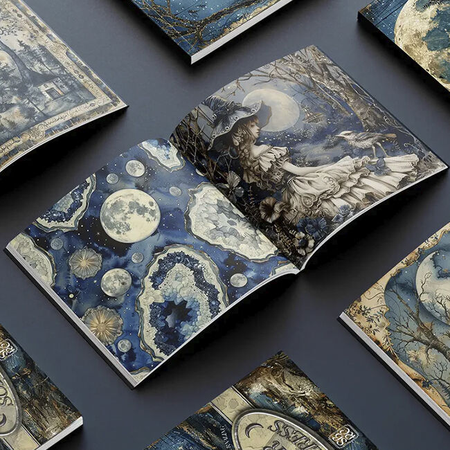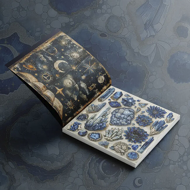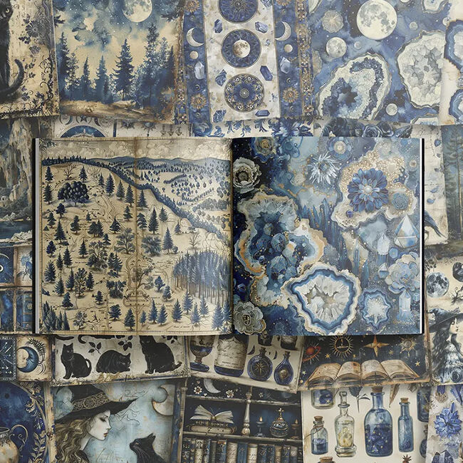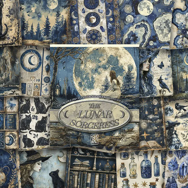 Astu mystiseen Kuunvelhon valtakuntaan, jossa kuun eteerinen hehku opastaa polkuasi lumouksen ja taian täyttämässä maailmassa. Uppoudu tummansinisen ja norsunluun lumoaviin sävyihin, jotka herättävät mieleen yötaivaan seesteisen kauneuden ja kuunvalon puhtauden. Tämän koristeellisen paperikon jokainen sivu on koristeltu kiehtovilla kuvilla Kuunvelhosta, joka kutoo loitsuja ja valjastaa kosmoksen voiman. Täydellinen scrapbooking- ja korttien tekoon, Kuunvelho kutsuu sinut kanavoimaan sisäistä taikuuttasi ja luomaan ihmeellisiä ja kiehtovia tarinoita. Syleile kuun mystiikkaa Kuunvelhon avulla, jossa jokainen kuvio kuiskaa muinaisen viisauden salaisuuksia ja kutsuu sinut avaamaan maailmankaikkeuden mysteerit.