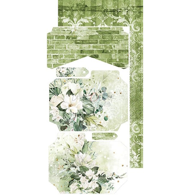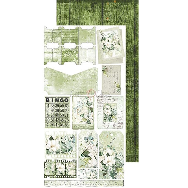Sarja 12 kaksipuolista sivua korkealaatuista scrapbooking-paperia lisäelementeillä leikattavaksi (2x6 mallia) + 1x arkki, jossa EXTRAS TO CUT kannen toisella puolella. Jokainen sivu on kooltaan 15,5x30,5 cm. Paperi painaa 250g/m2.