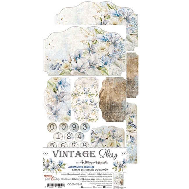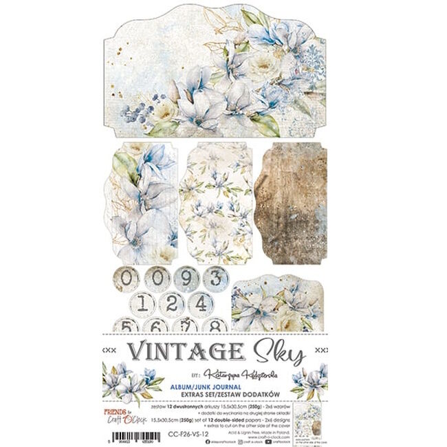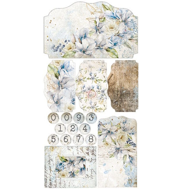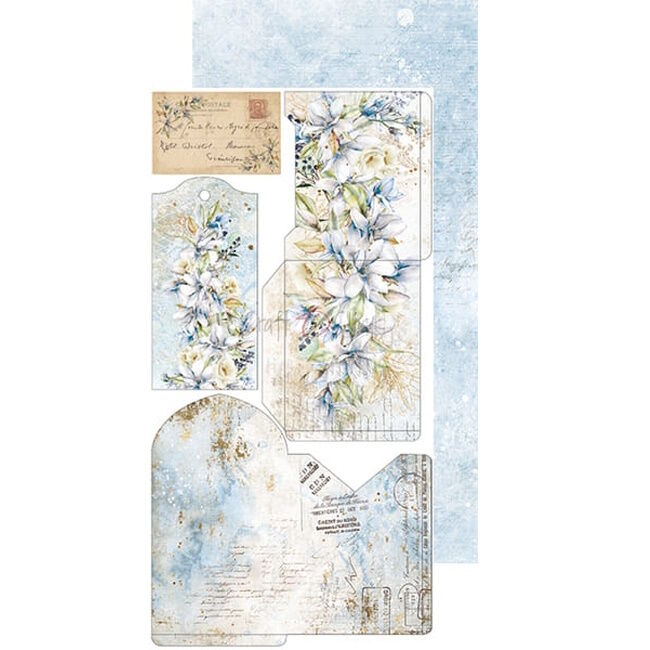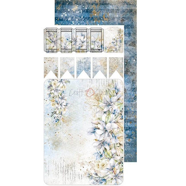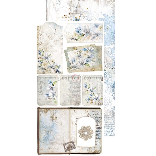 Sarja 12 kaksipuolista sivua korkealaatuista scrapbooking-paperia lisäelementeillä leikattavaksi (2x6 mallia) + 1x arkki, jossa EXTRAS TO CUT kannen toisella puolella. Jokainen sivu on kooltaan 15,5x30,5 cm. Paperi painaa 250g/m2.