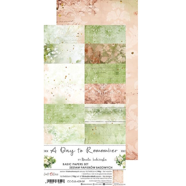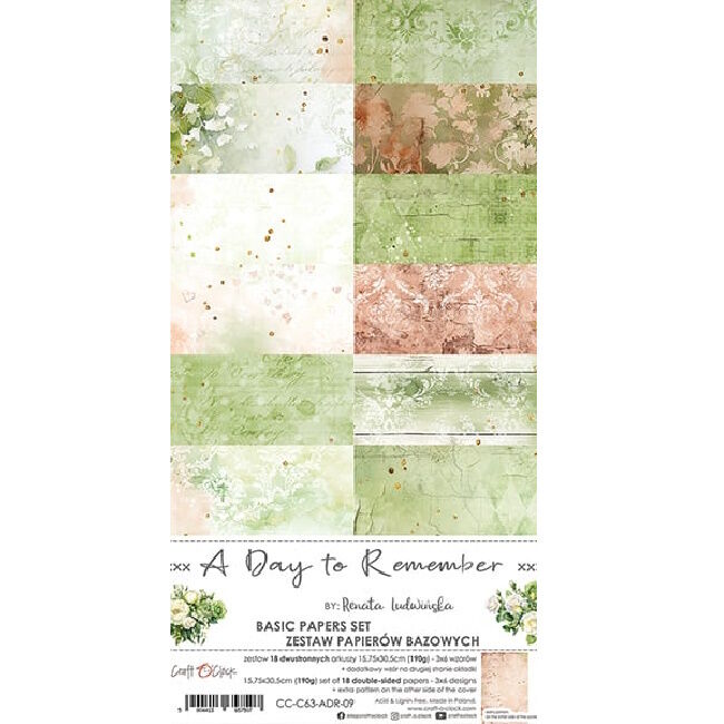 18 kaksipuolisen sivun sarja korkealaatuista scrapbooking-paperia lisäelementeillä - 3x6 kuvioita. Plus-arkki kannen sisäpuolella.