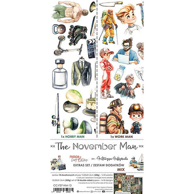 18 kaksipuolisen sivun sarja korkealaatuista scrapbooking-paperia lisäelementeillä. Plus-arkki kannen sisäpuolella.