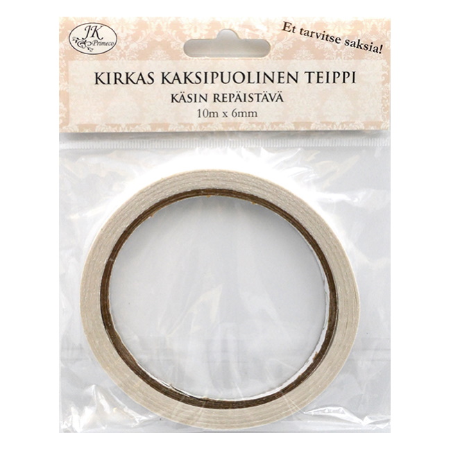 Kirkas, kaksipuolinen teippi askarteluun, joka on helppo katkaista käsin. Et tarvitse saksia!