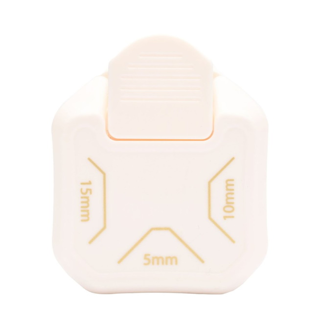 Tällä kulmanmuotoilijalla voit leikata kolmea erikokoista vinokulmaa yhdellä työkalulla. Leikkaa pieni kulma (5 mm), keskikokoinen kulma (10 mm) tai suuri kulma (15 mm) yksinkertaisesti kiertämällä leikkuria neljänneskierroksen verran. Näiden kolmen eri koon ansiosta yksi työkalu tarjoaa runsaasti vaihtoehtoja käytettäväksi paperin, kartongin, valokuvien ja muiden kanssa.
