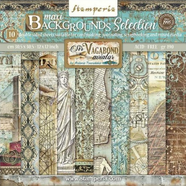 | 30x30 paperikko Maxi Background selection - Sir Vagabond Aviator - Stamperia | ||||