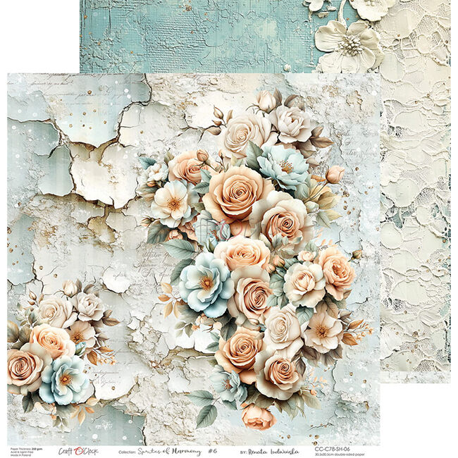 Kuuden kaksipuolisen sivun (12 kuviota) setti korkealaatuista scrapbooking-paperia. Jokainen sivu on kooltaan 30,5x30,5 cm (12x12 tuumaa) ja mukana tulee nimiliuska. Kansilehden sisäpuolella on lisäkuvio.
