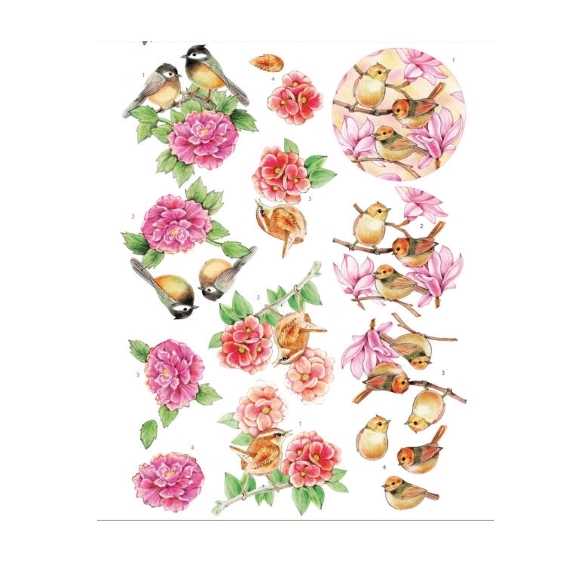 | 3D push-out kuva-arkki Birds & flowers pink | ||||