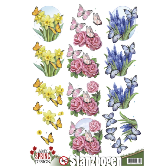 3D push-out kuva-arkki Kevät perhoset