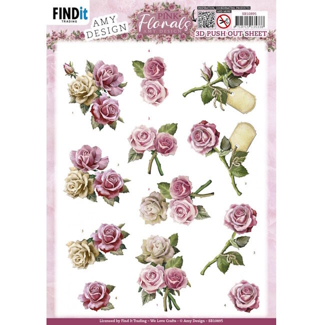| 3D push-out kuva-arkki Pink Florals - Roses | ||||