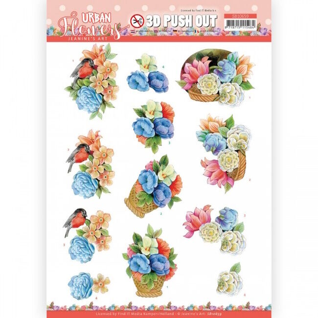 | 3D push-out kuva-arkki Urban Flowers - Basket Of Flowers | ||||