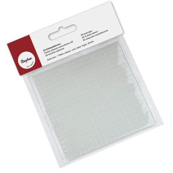 Tarrapalat, paksuus 1 mm. Liimapinta molemmin puolin. Sopii 3D-malleihin. 5x5 mm, 400 kpl.