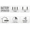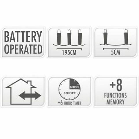 Lämpimän valkoinen hopealanka valosarja jossa 40 lediä 5 cm välein. Valosarja toimii paristoilla (3xAA 1,5V)(ei sisälly pakkaukseen), ja soveltuu sekä sisä- että ulkokäyttöön. Valo-osuuden pituus on 1,95 metriä. Valosarjassa on ajastin (6 h päällä, 18 h kiinni), ja kahdeksan erilaista valotoimintoa.