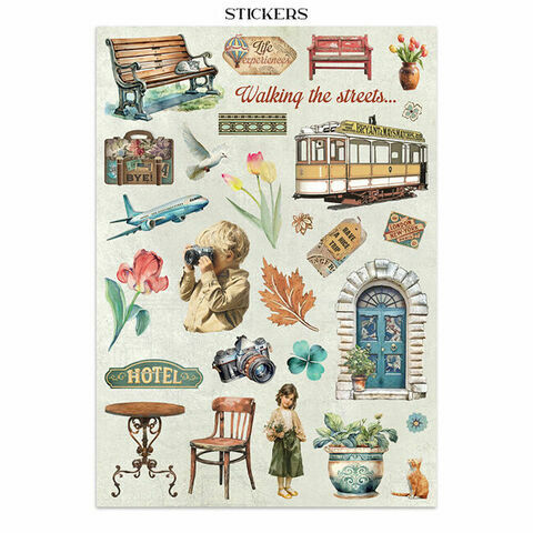 A4 Art of Travelling Junk Journal Stickers, Backgrounds, Cut-Outs - Stamperia