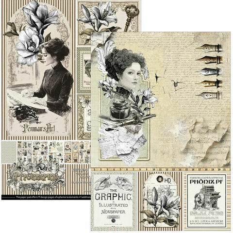 Creative Pad on erityinen resurssi koriste-korteille, lapuille, postimerkeille, mitaleille, etiketeille, tervehdyksille ja muille luoville elementeille. Jokainen lehtiö tarjoaa yli 120 koristetta projekteihisi! Ihanteellinen scrapbooking-, korttien valmistus-, paperiaskartelu- ja sekatekniikkaprojekteihin. Tämä pakkaus sisältää yhden arkin kutakin 9 kaksipuolista painettua arkkia.