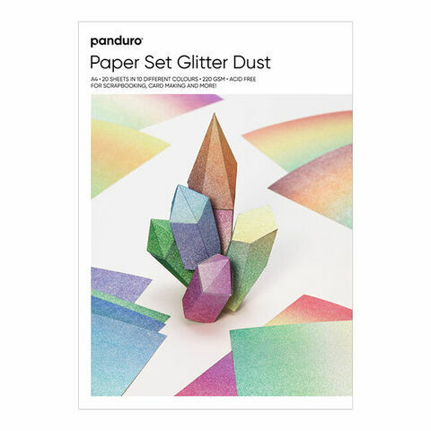 Paperilajitelma, jossa on 20 yksipuolista painettua kimallearkkia A4-koossa, pintapaino 220 grammaa. Arkeissa on kaunis kimalteleva pinta ja hieman tekstuuria. Pakkauksessa 10 eri väriä, 2 arkkia kutakin väriä. Nämä kauniit arkit sopivat origamiin, korttien tekoon, scrapbookingiin, paperintaitteluun, decoupageen ja paperiaskarteluun, jotka vaativat hieman paksumpaa ja kimaltelevaa paperia. Hapoton.