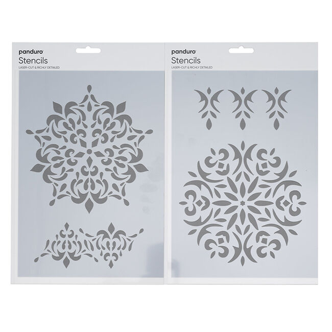 Kahden kappaleen pakkauksessa oleva sapluuna, jolla on helppo maalata kauniita ja unelmoivia mandaloita! Halusitpa sitten maalata paperille, seinille tai koristella vaatteita kangasväreillä ja glitterillä, saat kauniita ja teräviä tuloksia. Sapluuna on valmistettu pehmeästä muovista ja sen koko on A4, 21 × 29,7 cm.