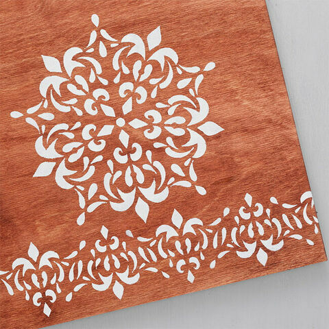 TEE NÄIN: Maalaa telalla tai tuputtimella. Kiinnitä sapluuna esim. maalarinteipillä tai sapluunaliimalla ja pidä sormillasi kiinni maalauksen aikana. Käytä säästeliäästi maalia, jotta väri ei leviä sapluunan alle. Testaa ensin maalin määrää esim. talouspaperiin tai vastaavaan.