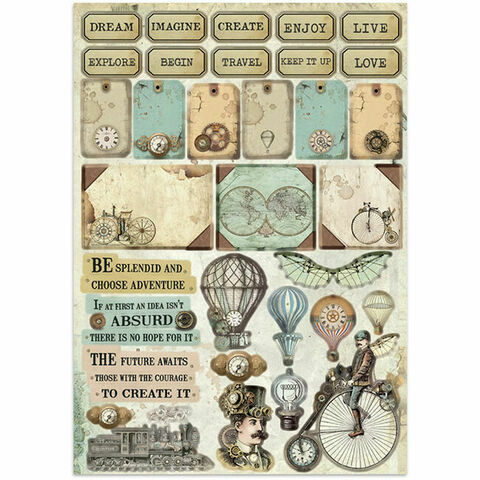 A4 Voyages Fantastiques Junk Journal Stickers, Backgrounds, Cut-Outs - Stamperia