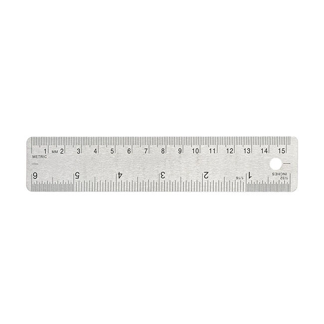Ruostumattomasta teräksestä valmistettu 15 cm viivain