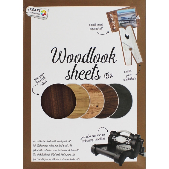 15 puukuvioista tarrapaperia. Sopii kaikenlaisiin käsityöprojekteihin ja on yhteensopiva useimpien johtavien leikkuu- ja kohokuviointikoneiden kanssa. A5.