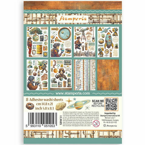 Washilehtiö on erityisesti suunniteltu koristamaan kortteja, lehtiä ja kutsuja mihin tahansa juhliin, vuosipäiviin ja häihin. Washilehtiö on painettu 8 arkille läpikuultavaa washi-paperia, joka on helppo leikata. Toimii parhaiten vaaleilla pinnoilla.