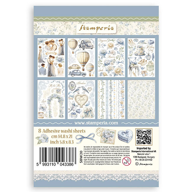 Washilehtiö on erityisesti suunniteltu koristamaan kortteja, lehtiä ja kutsuja mihin tahansa juhliin, vuosipäiviin ja häihin. Washilehtiö on painettu 8 arkille läpikuultavaa washi-paperia, joka on helppo leikata. Toimii parhaiten vaaleilla pinnoilla.