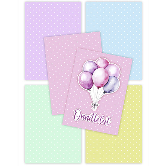 Kartonkilajitelma askarteluun ja koristeluun. Pakkaus sisältää yhteensä 20 arkkia A6-kokoista kuvioitua kartonkia, joissa on viisi eri kuosia. Yhtä kuosia on 4 kappaletta per paketti.