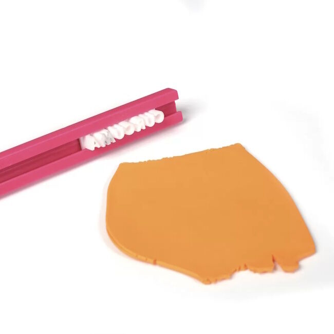 Tämä leimaviivain on saanut inspiraationsa leipomisesta ja sen avulla voit kirjoittaa tekstejä helposti polymeerimassoille. Liu'uta kirjaimet tai symbolit viivaimeen ja paina massaan ennen paistamista. Kirjainten ja numeroiden mitat ovat 5x4mm ja viivaimen mitat 9x110mm.