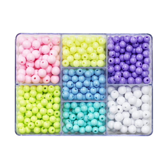 Pastellihelmet, kahta eri kokoa - käytännöllisessä säilytyslaatikossa, jossa on 7 osastoa. Laatikko sisältää 7 eri väriä helmiä: suuret valkoiset ja vaaleanpunaiset helmet (ø1 cm) ja keskikokoiset vaaleanvihreät, vanhanaikaiset vaniljavalkoiset, violetit, merenvihreät ja vaaleansiniset (ø7 mm). Yhteensä noin 525 kpl.