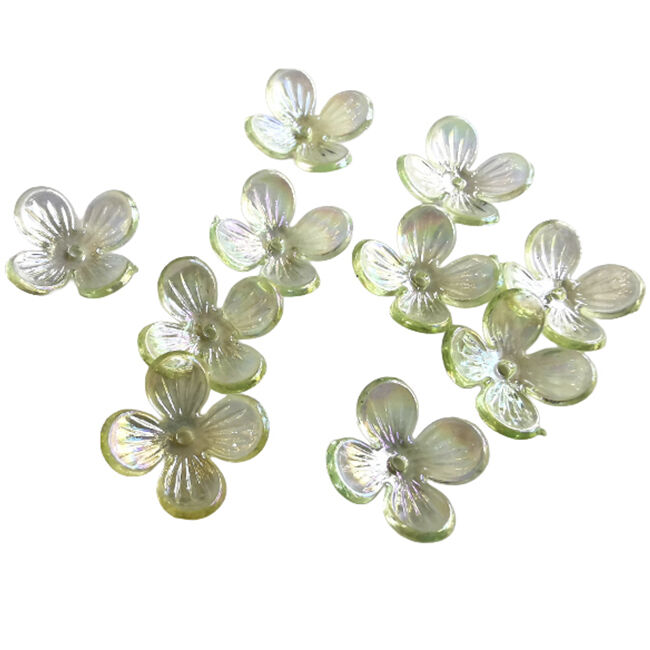 Akryylikukka 4 terälehtinen AB vaaleanvihreä 18x16mm 10kpl.