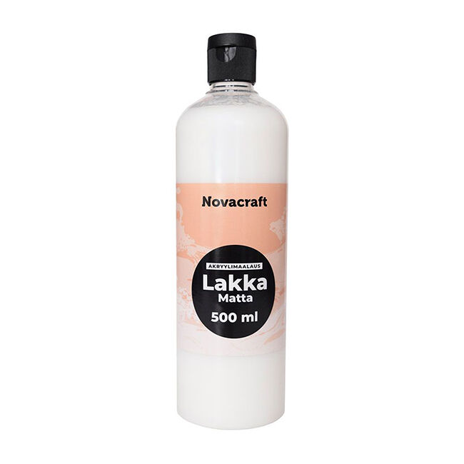 Matta lakka (500 ml) antaa akryylimaalaukselle mattapintaisen lopputuloksen ja parantaa kestävyyttä. Lakka suojaa töitä pölyltä, lialta, kosteudelta, naarmuilta ja haalistumiselta, varmistaen värien säilymisen kauniina pitkään.