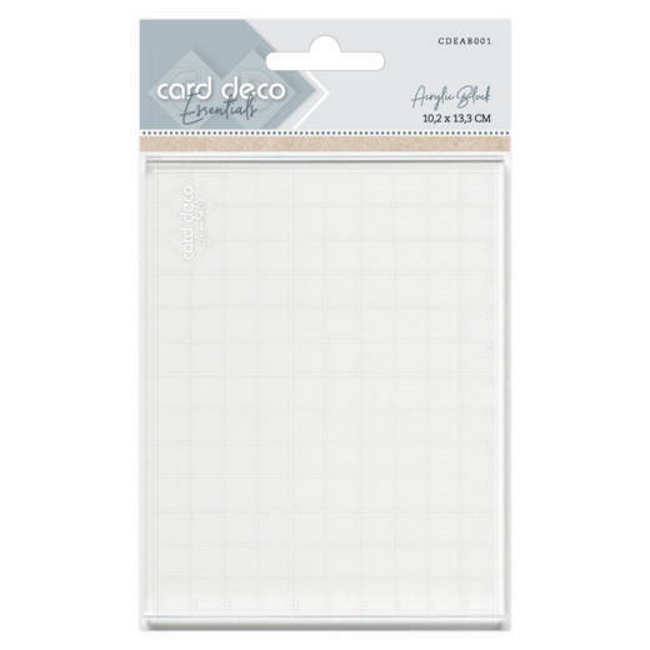 Kirkas akryylilevy silikonileimasimia varten. Levyn koko 10,2 x 13,3 cm. Levyssä kohdistamista helpottava ruudukko.