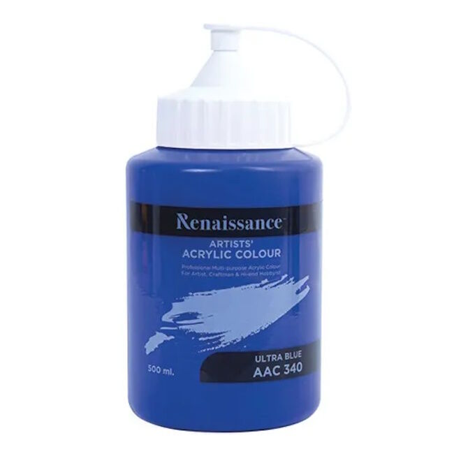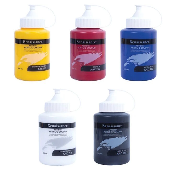 Renaissance akryylimaalit ovat myrkyttömiä ja CE-merkittyjä. Maalit levittyvät helposti ja pigmentti on erittäin peittävää. Värit sekoittuvat hyvin keskenään, joten saat varmasti luotua tarvitsemasi sävyt. Kuivuttuaan lopputulos on puolikiiltävä. Maalit ovat vesiohenteisia eli niitä voi halutessaan ohentaa vedellä. Maalit tulevat kätevissä uudelleen suljettavissa 500 ml pulloissa. Pese työvälineet sekä kädet lämpimällä vedellä ja saippualla.