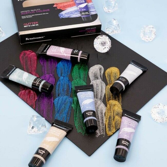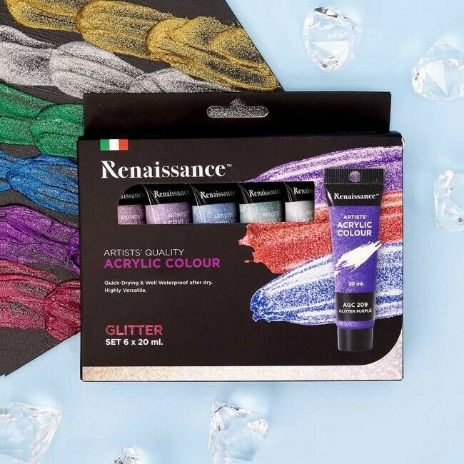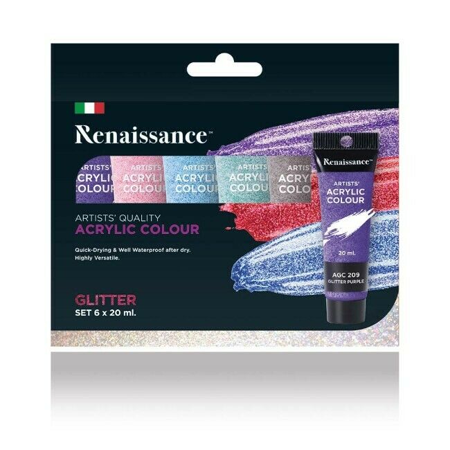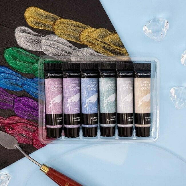Akryylimaalisetti 6 x 20 ml glittervärit