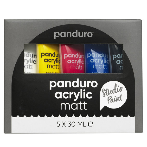 Panduro Acrylic -maali, matta, joustava akryylimaali studiokäyttöön. Vahvat, kirkkaat värit paksussa tekstuurissa ja erittäin hyvä peittävyys. Sopii sekä aloittelijoille että kokeneemmille taiteilijoille. Vesipohjainen. Valoresistentti. Korkea pigmenttipitoisuus. Ei halkeile. Värejä voidaan sekoittaa keskenään. Kuivumisaika noin 30 minuuttia (riippuen värikerroksen paksuudesta). Siveltimet ja työkalut puhdistetaan vedellä.