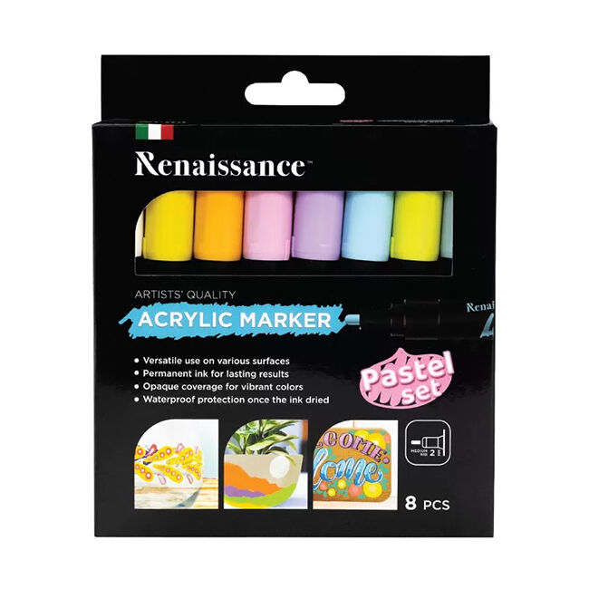 Renaissance akryylitussit sopivat useimmille materiaaleille mm. paperille, pahville, maalauspohjille, puulle, tekstiileille, kivelle, useimmille muoveille, metallille, lasille ja keramiikalle. Piirtojälki on peittävä ja kuivuttuaan vedenkestävä.