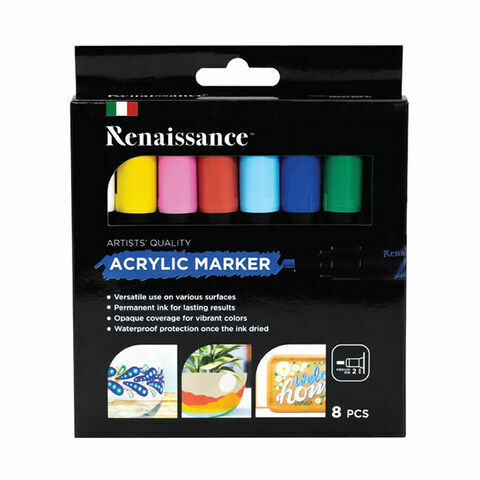 Renaissance akryylitussit sopivat useimmille materiaaleille mm. paperille, pahville, maalauspohjille, puulle, tekstiileille, kivelle, useimmille muoveille, metallille, lasille ja keramiikalle. Piirtojälki on peittävä ja kuivuttuaan vedenkestävä.