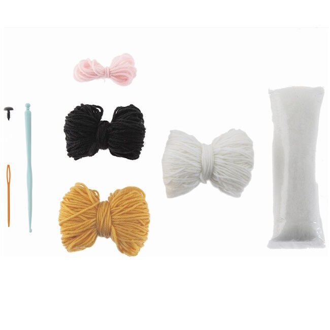 Pidätkö virkkaamisesta? Tämä paketti sisältää kaiken mitä tarvitset tämän suloisen pandan virkkaamiseen! Oranssilla, mustavalkoisella langalla ja virkkuukoukulla ja pandan nenällä olet virkannut pandan hetkessä! Mikä söpö panda, hymy kasvoillaan ja oranssi hattu päässä.