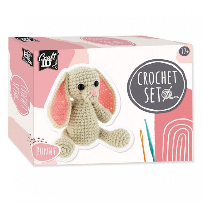Pidätkö virkkaamisesta? Tämä paketti sisältää kaiken mitä tarvitset tämän suloisen pupun virkkaamiseen! Beigellä ja punaisella langalla ja virkkauskoukulla ja kanin silmillä virkkaat pupun hetkessä! Mikä suloinen kani, jolla on vaaleanpunainen nenä ja pitkät korvat.