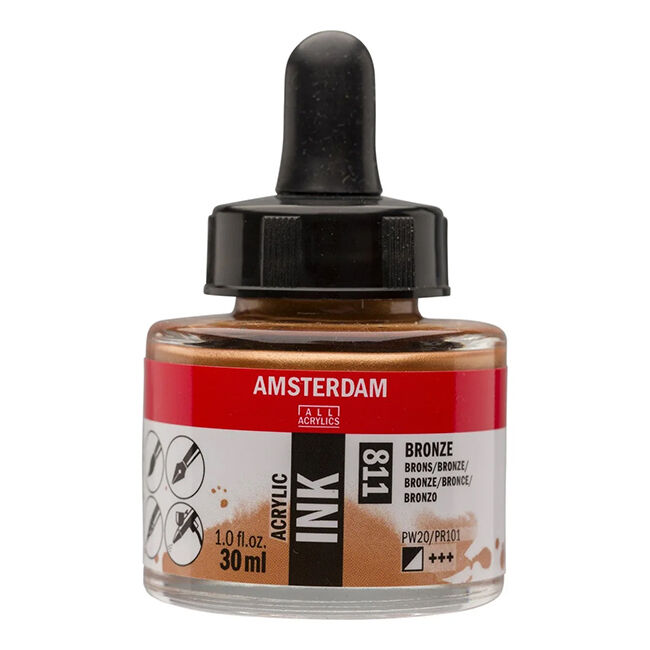 Amsterdam-akryylimuste yhdistää musteen parhaat ominaisuudet akryylimaalin etuihin – erittäin juoksevat, eloisat värit eivät haalistu ja kuivuvat nopeasti pysyvällä pinnalla.