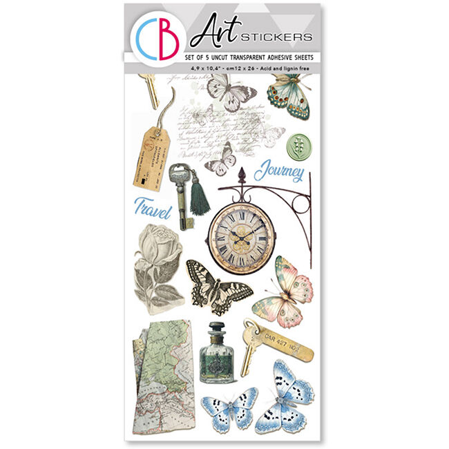 Art Stickers: Yli 30 kuvaa leikkaamattomilla, täysin läpinäkyvillä arkeilla junk journaliin, kollaasiin, scrapbookingiin, korttien tekoon ja paperiaskarteluihin!