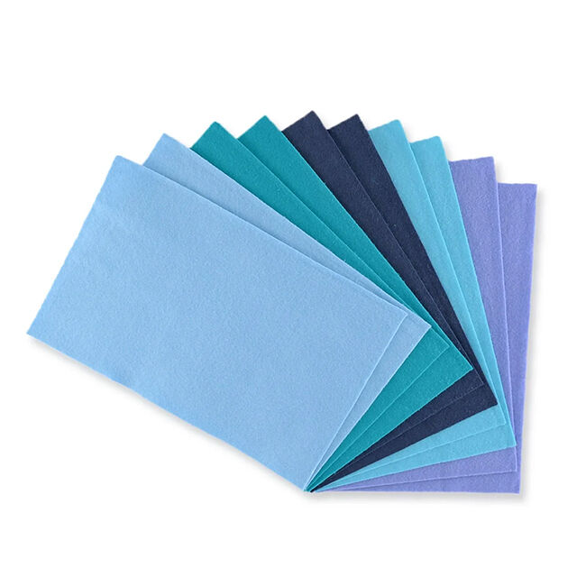 Askarteluhuopa 10-pakkaus, A4 kokoisia huopa-arkkeja. Ohutta huopaa 100 % polyesteriä. Jokaista väriä on 2 kappaletta.