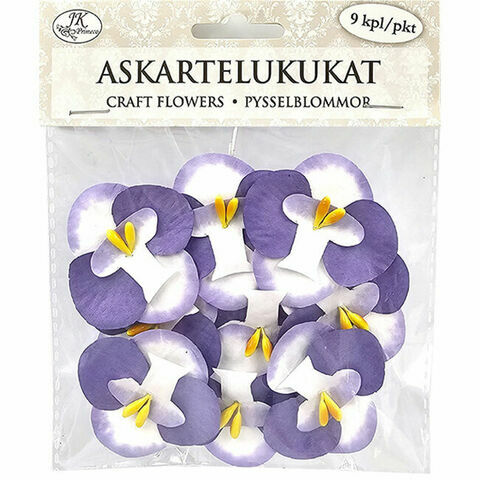 Askartelukukat askarteluun ja koristeluun. Pakkaus sisältää yhdeksän kappaletta paperisia askartelukukkia, joissa on rautalanka.