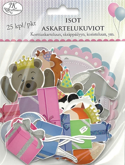 Lajitelma isoja askartelukuvioita askarteluun ja skräppäilyyn. 25kpl/pkt.