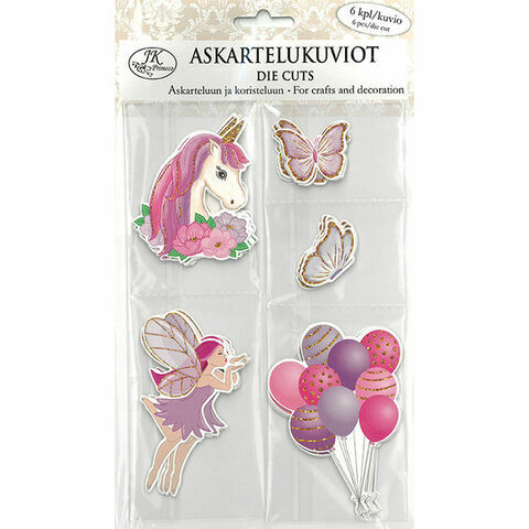 Askartelukuviot askarteluun ja koristeluun. Pakkaus sisältää erilaisia kartonkisia askartelukuvioita, joita on 6kpl per kuvio. Kuvioissa on glitteriä.