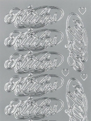 Ääriviivatarra koristeellisella Kiitos -tekstillä.